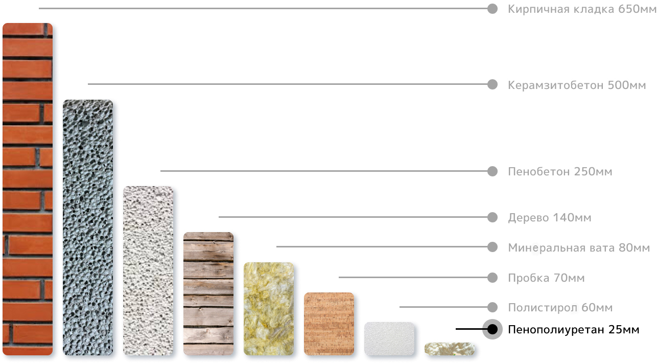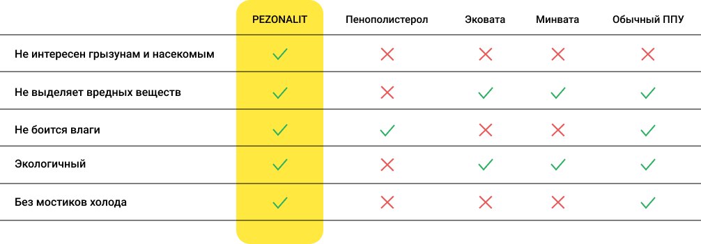 Сравнение ППУ с добавкой PEZONALIT с другими утеплителями